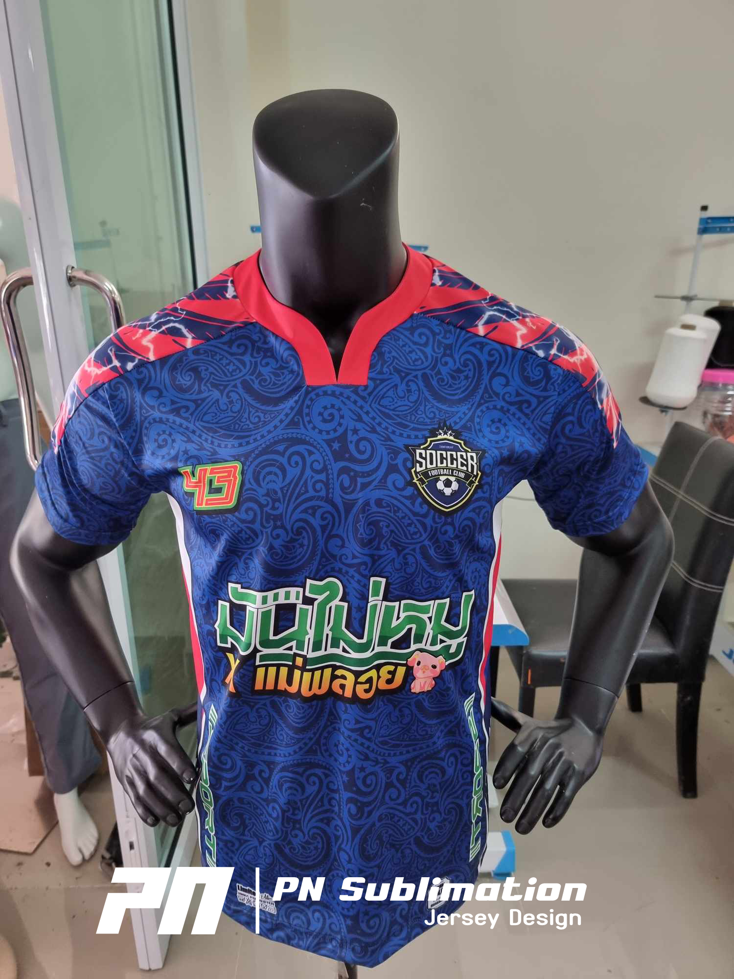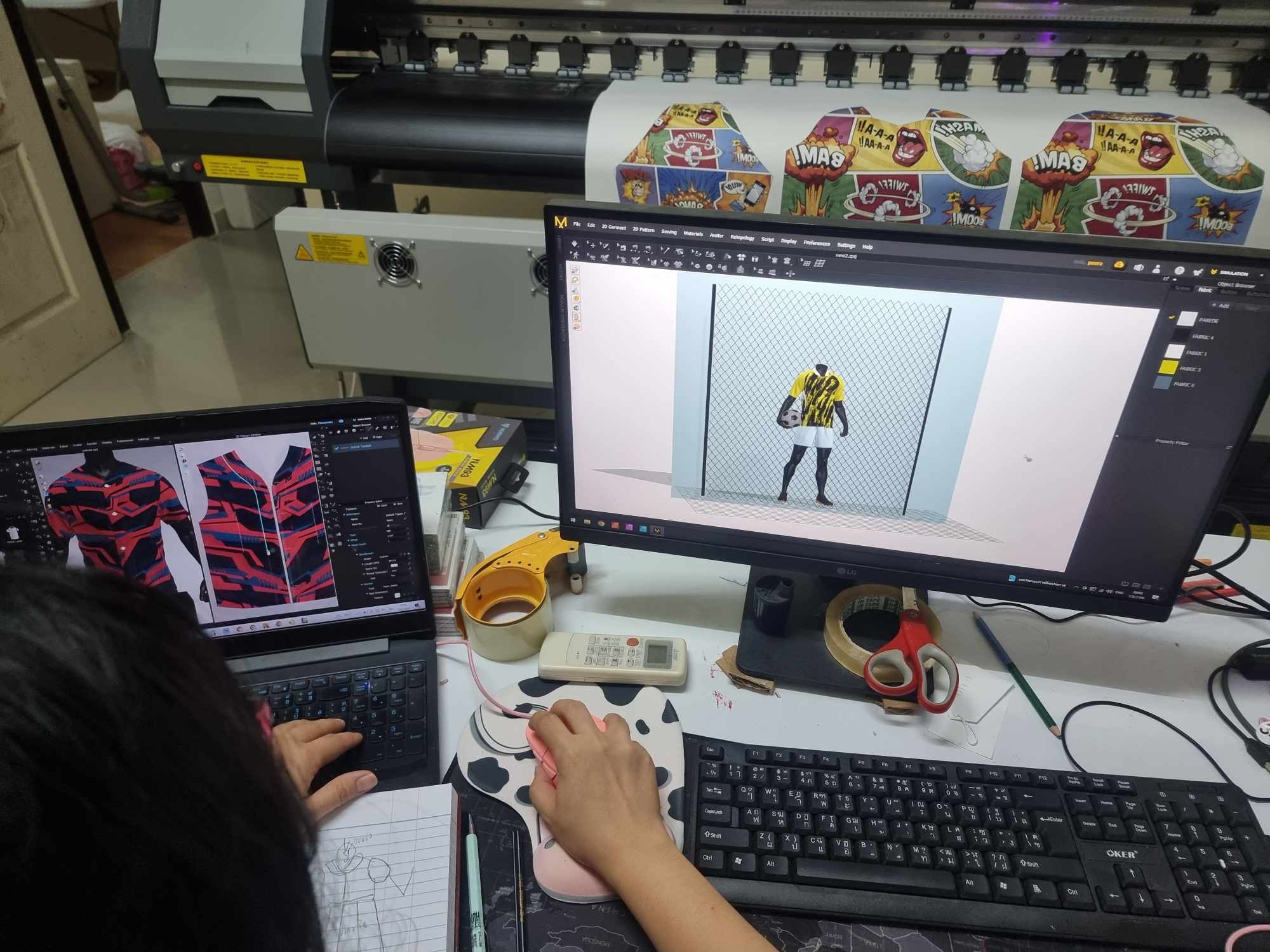 Mockup ของทางร้านสร้างโดยโปรแกรม Clo3D โดยใช้แพทเสื้อกีฬา ที่นำไปผลิตจริง แบบการตัดเย็บจริงกับแบบ Mockup จึงเหมือนกันครับ